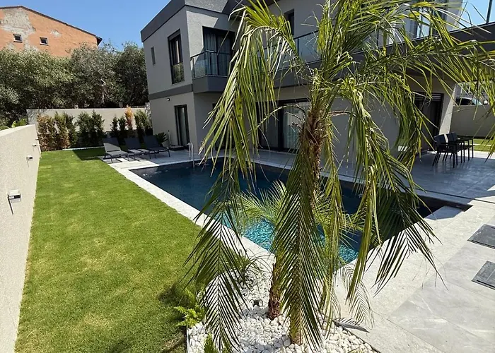 Vip Lueks Odalar Banyo Ve Klimali villa includes a dining area with coffee and tea makers, kitchenware, and a dishwasher. Offering Mediterranean dishes, Iyonya Restaurant is within 25 minutes' walk of the villa. Guests can relax in a private garden or take a dip in a private swimming pool at this Cesme accommodation.